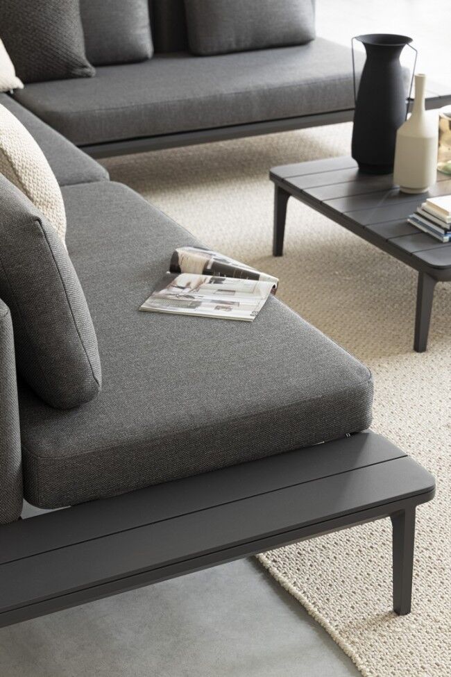 Vrtna garnitura dvosjed 2P MATRIX antracit WG21 moderan je i svestran komad namještaja, idealan za opuštanje na otvorenom. Struktura mu je izrađena od izdržljivog aluminija , praškasto obloženog poliesterskom bojom u elegantnoj antracit boji, što osigurava otpornost na vremenske utjecaje i dug vijek trajanja. Naslon za leđa se ne može skinuti i presvučen je Olefin tkaninom koja je vodoodbojna i izdržljiva, te ispunjen brzosušećom pjenom koja omogućuje udobnost čak i u vlažnim uvjetima. Jastuci za sjedalo i naslon se mogu ukloniti i također su izrađeni od vodootporne olefinske tkanine. Sofa je dizajnirana modularno, što omogućuje tri različite konfiguracije: kao dvosjed s bočnom potporom desno, dvosjed s bočnom potporom lijevo ili kao ležaljka . Naslon za leđa i bočni oslonac isporučuju se zasebno i moraju se sastaviti.