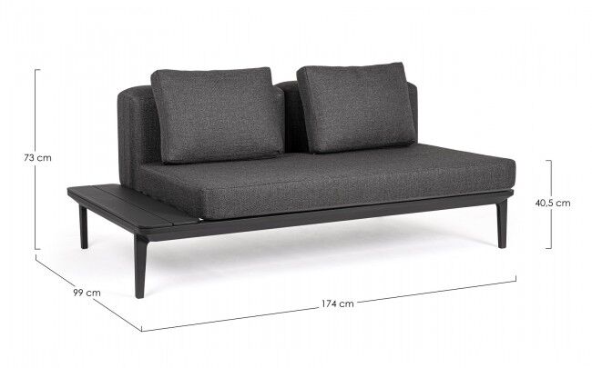 - Modularnost: Omogućuje tri različita rasporeda: dvosjed s bočnom potporom s desne strane, dvosjed s bočnom potporom s lijeve strane ili kao ležaljka