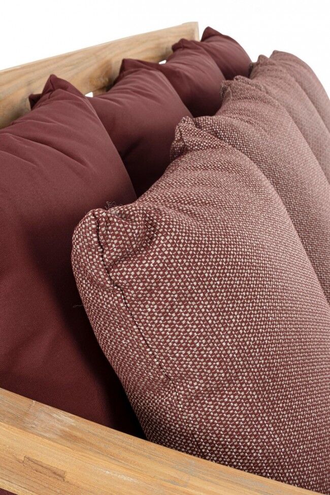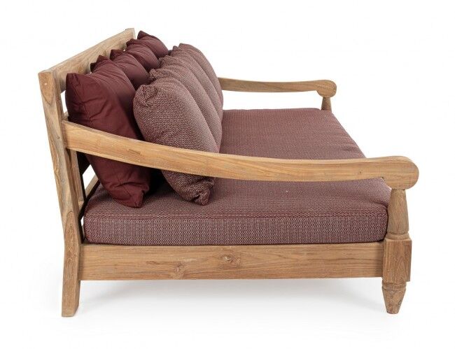 Vrtni kauč postelja BALI WINE od FSC tikovine s jastucima u boji vina idealan je izbor za elegantan vanjski prostor. Savršena kombinacija udobnosti i izdržljivosti za terase, vrtove i vanjske prostore.
