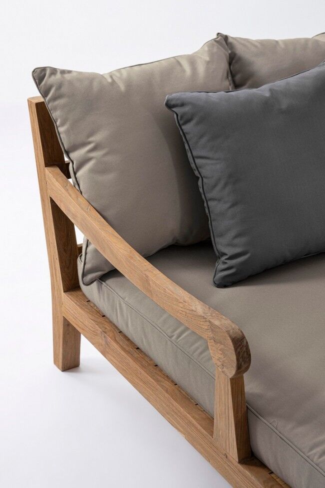 Vrtna lounge garnitura BALI od FSC tikovine je elegantan i udoban izbor za vanjski prostor. S dvije prostrane sofe i izdržljivim vodoodbojnim jastucima, idealan je za opuštanje na terasi, u vrtu ili uz bazen. Ovaj set kombinira prirodnu estetiku s izdržljivošću, dodajući dašak luksuza i bezvremenske elegancije vašem vrtu.
