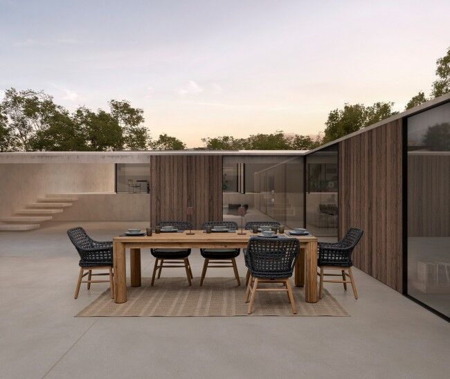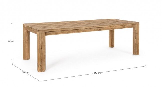 Vrtni stol MAVERICK 240X100 od recikliranog tikovog drva (SVLK certificirano), s prirodnom četkanom obradom. Vijci od nehrđajućeg čelika. Noge se moraju sastaviti. Kapacitet: 10 osoba.