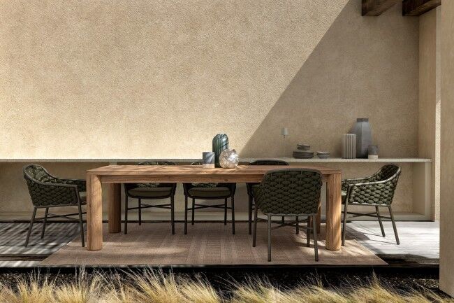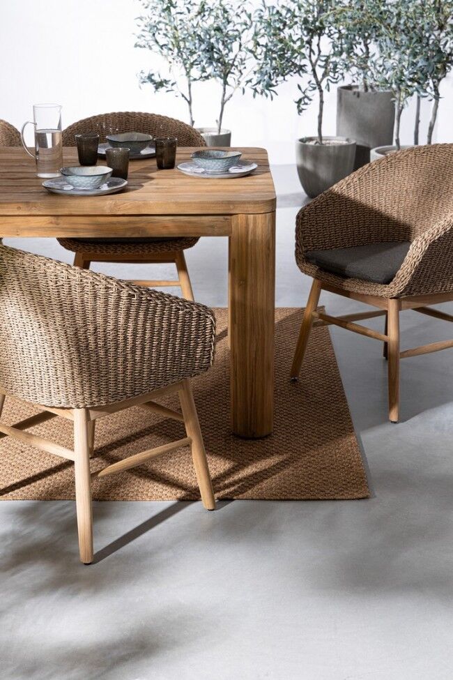 Vrtni stol MAVERICK 240X100 izrađen je od recikliranog tikovog drva, što osigurava trajnost i jedinstven izgled. Površina i noge stola su od tikovine, certificirane prema SVLK standardu, što znači da dolazi iz održivo upravljanih šuma. Prirodna četkana obrada naglašava prirodnu ljepotu drva. Vijci su od nehrđajućeg čelika, što osigurava otpornost na hrđu. Drveni proizvod od recikliranog tikovog drva karakterizira prisutnost drvenih umetaka različitih vrsta i boja. Moguće pukotine, pukotine ili nesavršenosti, koje se mogu pojaviti i tijekom vremena, karakteristike su ovog materijala i čine svaki komad jedinstvenim i originalnim. Noge se moraju sastaviti, što omogućuje jednostavan transport i skladištenje.