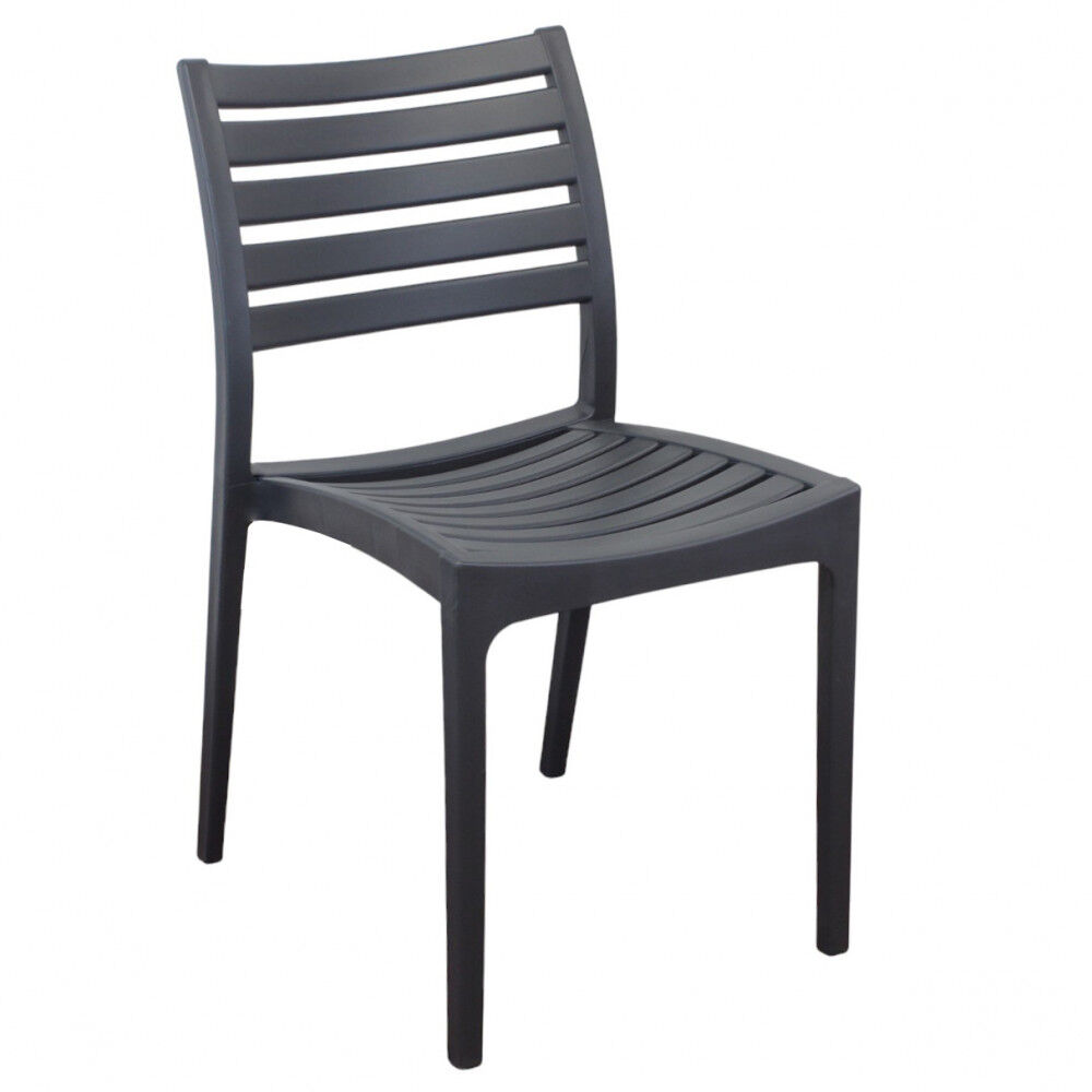 Moderan vrtni stolac od polipropilena u antracit boji. Lagan, izdržljiv i impilabilan. Minimalna narudžba: 4 kom. Težina: 4,7 kg.