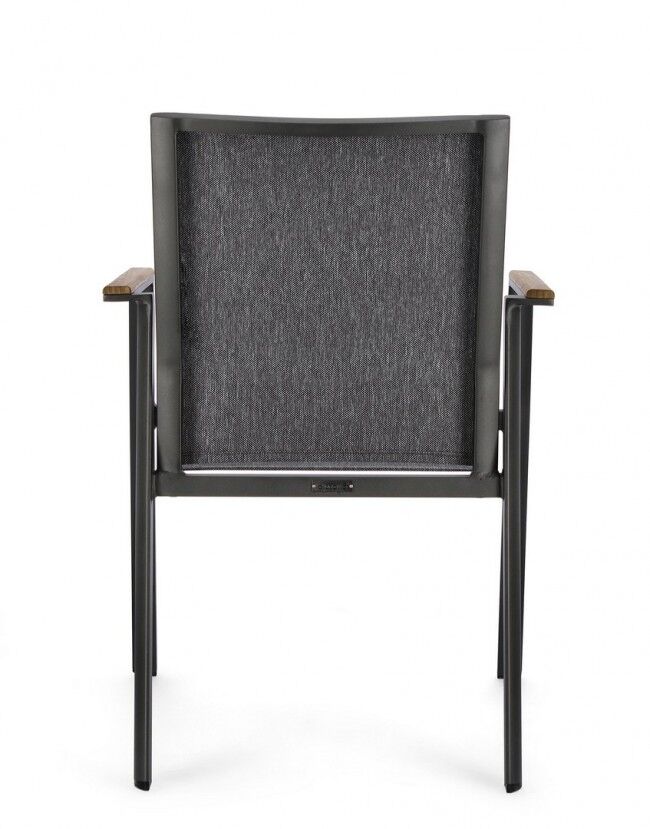- Naslonjala z vstavki iz tikovine: Naslonjala za roke so opremljena z vstavki iz tikovine (teak), kar doda stolu naraven in eleganten pridih.