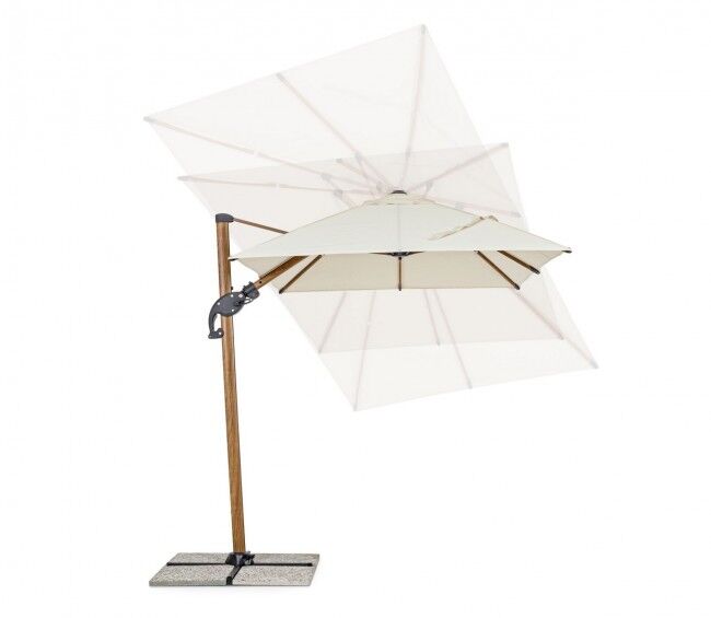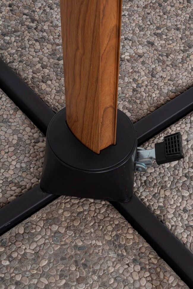 - **360° vrtljiva palica:** Senčnik je opremljen s palico, ki omogoča vrtenje senčnika za 360°, kar omogoča enostavno prilagoditev sence glede na pozicijo sonca. Vrtenje se enostavno izvaja s pedalom.