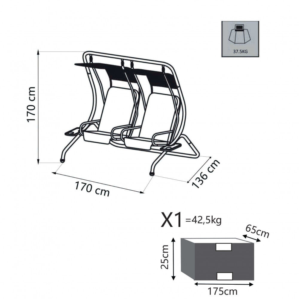 ČRNA struktura 180 g rjuha TAUPE poliestrska pločevina cevi Ø 48 x 1,2 mm 300x600 g TAUPE oxford tkanina z ločenima sedežema Dimenzije: 170 x 136 x 170 h cm