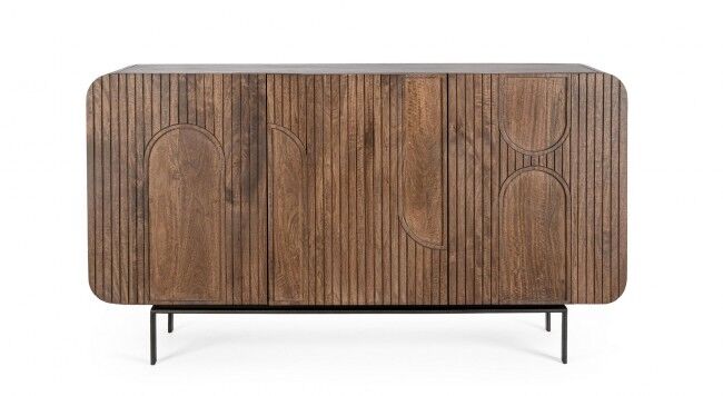 Komoda 3A ORISSA NATURALE - sodobna kredenca iz mangovega lesa z jeklenimi nogami. Praktične police in eleganten dizajn zagotavljajo popolno kombinacijo estetike in funkcionalnosti.