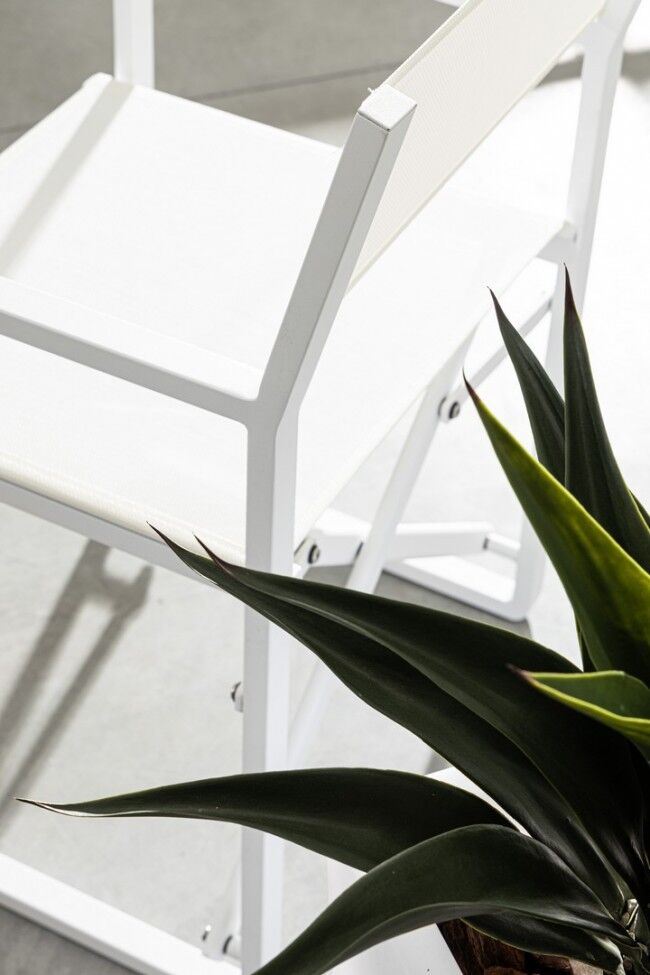 - **Aluminijasta konstrukcija**: Stol je izdelan iz trpežnega aluminija, kar mu daje stabilnost in dolgo življenjsko dobo. Aluminij je znan po svoji lahkosti in odpornosti proti koroziji.