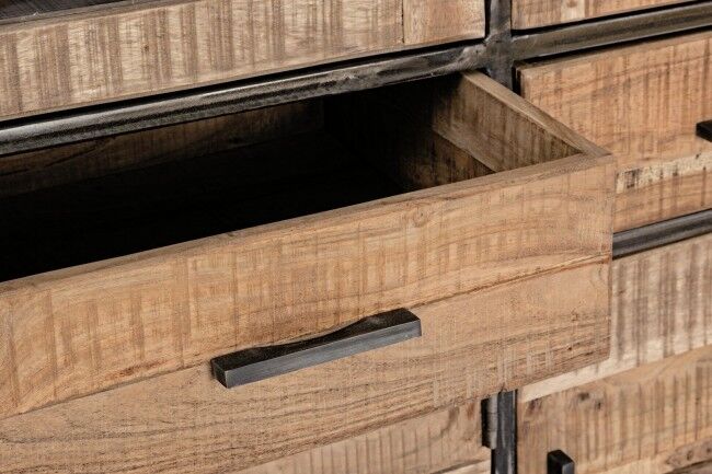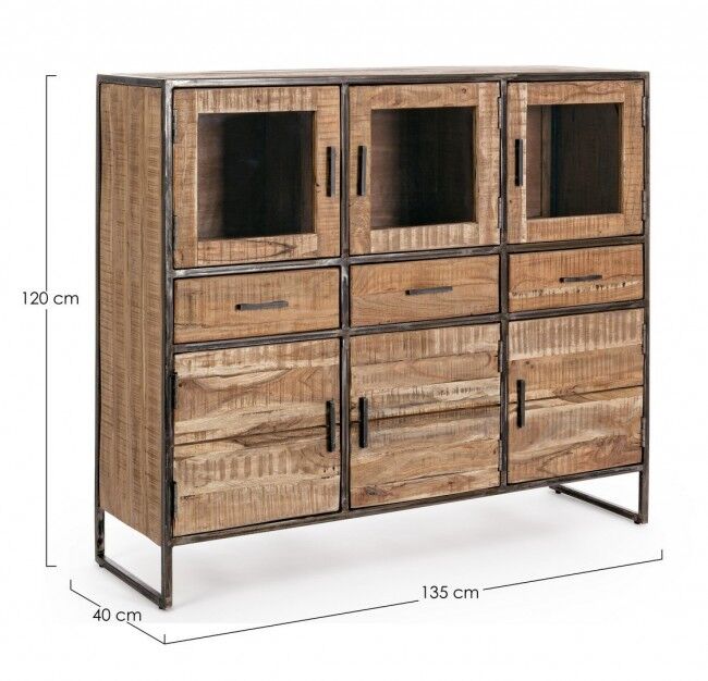 KREDENCA 6A-3C ELMER združuje robusten industrijski dizajn z eleganco in funkcionalnostjo. Ta kredenca je idealna za vsak sodoben dom, saj ponuja praktičnost in stil za shranjevanje različnih predmetov.