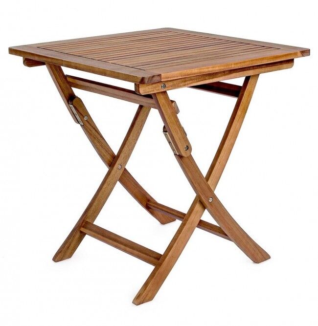 Kvadratna lesena vrtna zložljiva miza NOEMI, zložljiva, dimenzije 70 x 70 cm. Iz akacije z oljnim premazom, primerna za 4 osebe.