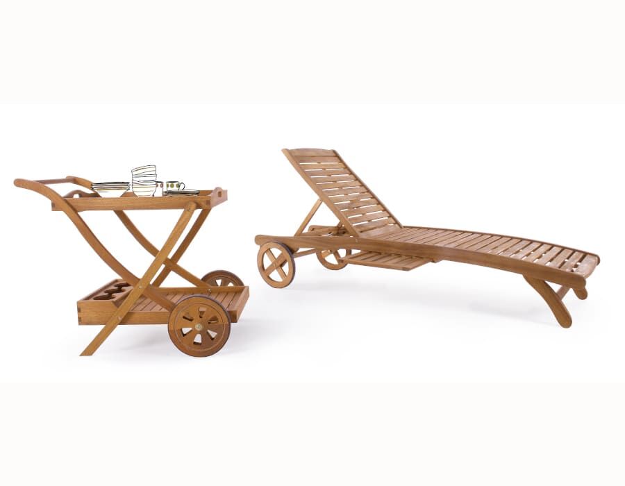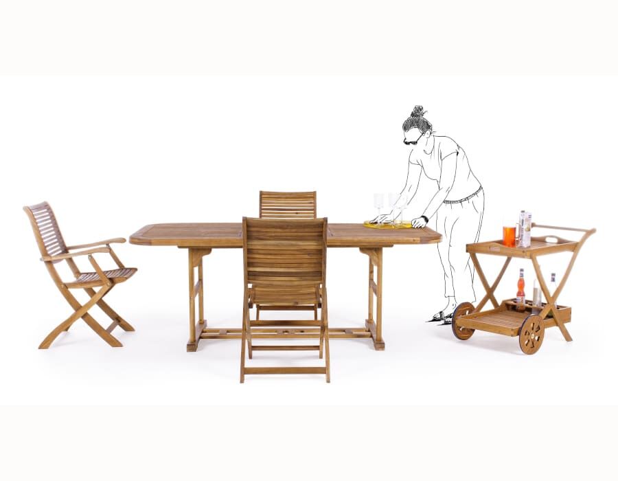 Leseni servirni voziček NOEMI iz lesa akacije z oljno obdelavo. Eleganten in funkcionalen dizajn z dvema policama in velikimi kolesi za enostavno premikanje. Idealen za uporabo na prostem in v notranjih prostorih.