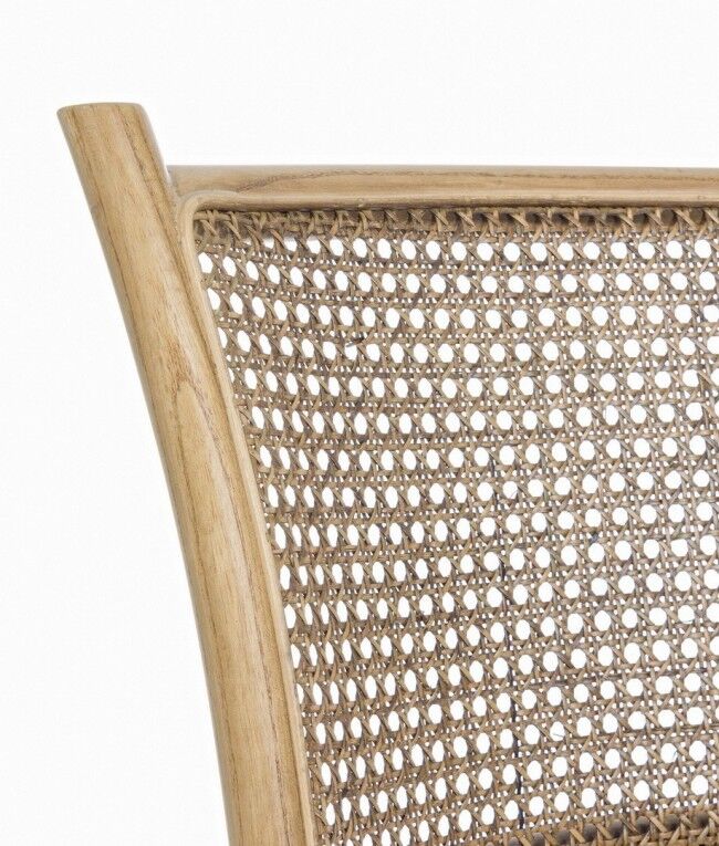 Leseni stol CARREL v naravni barvi, izdelan iz elmovega lesa z oblazinjenim sedežem in naslonjalom iz naravnega ratana. Prefinjen vintage stol, idealen za klasične in elegantne notranje prostore.