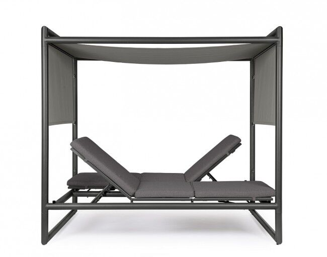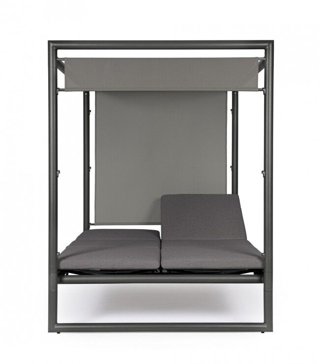 Ležaljka - Daybed KONNOR ANTRACIT je ekskluzivna izbira za luksuzne zunanje ambiente. Z dvema ločenima naslonjaloma, nastavljivim senčnikom in odpornimi materiali je idealna za bazene, hotele ali sodoben vrt.