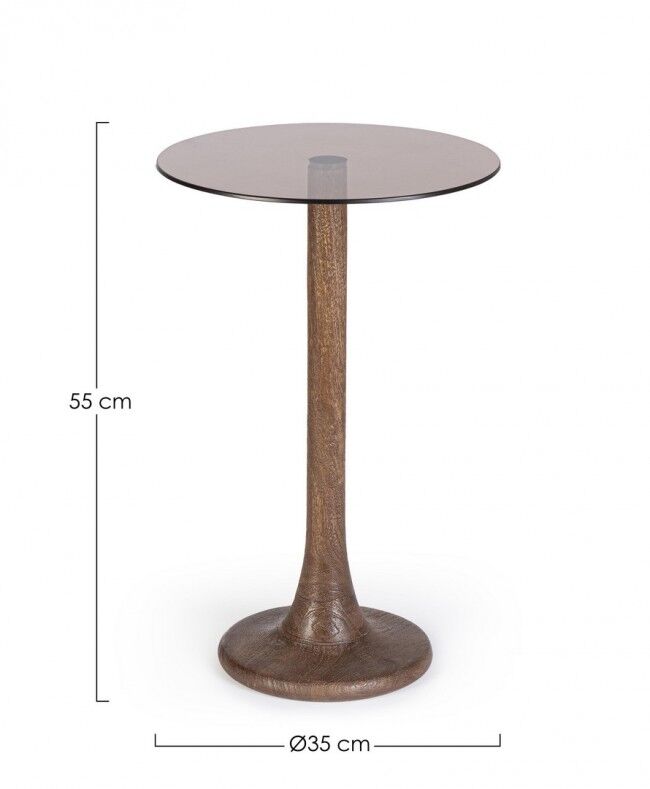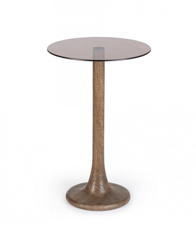 Mizica ABERDEEN rjava D35 z mangovim lesom in kaljenim steklom v barvi dima. Prefinjen in sodoben dizajn, popolna za sodobne interierje.
