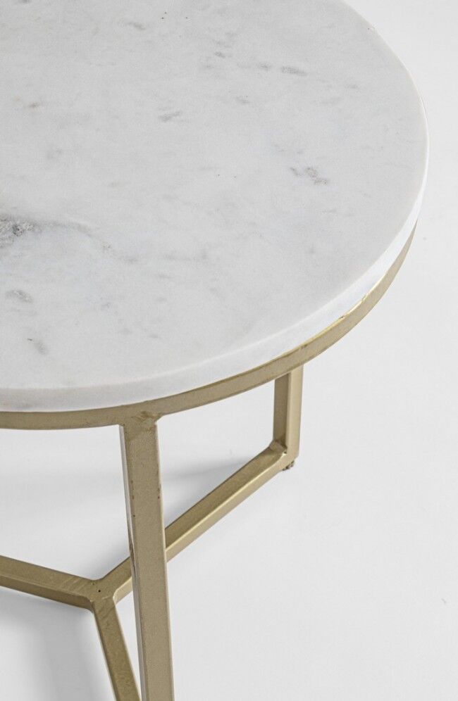 PHOENIX MIZICA D37.5 je eleganten okrogel stranski kos pohištva, ki združuje naravni marmorni vrh z minimalistično jekleno strukturo v zlati barvi. Ponaša se z brezčasnim vintage dizajnom in je popolna izbira za dnevne prostore, spalnice ali hotele.