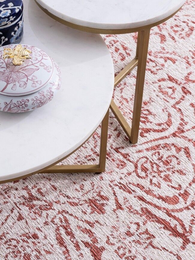 Elegantna okrogla mizica PHOENIX D57.5 s pravim marmornim vrhom in jekleno zlato strukturo v vintage stilu. Italijanska kakovost znamke Bizzotto.