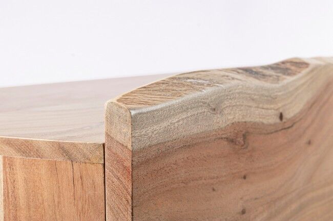 Predalnik 5C ARON je elegantno in funkcionalno pohištvo, izdelano iz kakovostnega akacijevega lesa. Ker je les v osnovi obdelan s poliuretansko barvo, je predalnik zaščiten in ima estetski zaključek, ki poudarja naravno lepoto lesa. Ena od posebnosti tega predalnika so predali z nepravilnimi robovi, kar ustvarja učinek "živega lesa" in dodaja unikaten, rustikalen pridih.