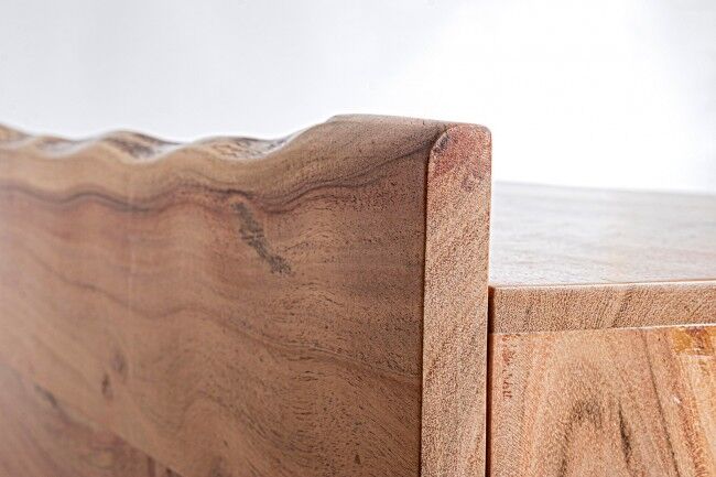 Posebnost predalnika ARON so frontni deli predalov, ki imajo nepravilne robove za učinek živahnega, naravnega lesa. Ta unikatna zasnova dodaja pridih naravne estetike in ročne izdelave, zaradi česar je vsak predalnik poseben in edinstven.