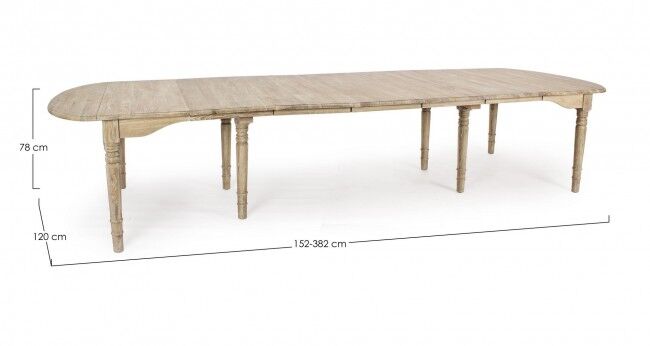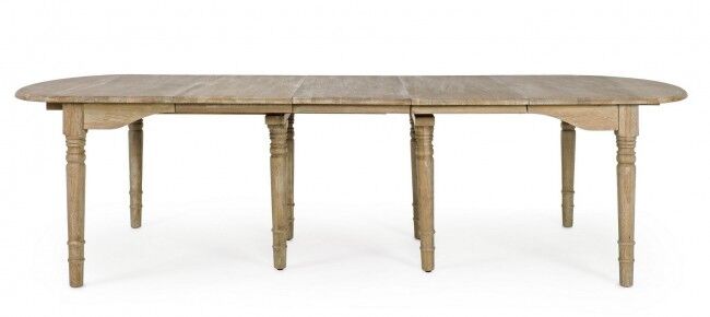 Raztegljiva miza BEDFORD 152-382X120 je zasnovana za funkcionalnost in eleganco, popolna za različne priložnosti. Izdelana je iz masivnega hrastovega lesa s premazom na vodni osnovi in zaključkom v staranem in voskanem videzu, ki daje mizi edinstven in prestižen izgled. Miza je v celoti zaprta velikosti 92x120 cm, z odprtimi ovalnimi stranicami meri 152x120 cm, ob popolni odprtosti pa doseže dolžino 382 cm z 5 zunanjimi podaljški, vsak dolžine 46 cm. Miza je enostavna za sestavo in omogoča prilagoditev dolžine glede na vaše potrebe.