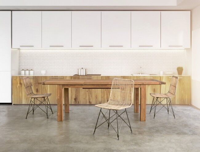 Raztegljiva miza BOUNTY 180-250 je elegantna in funkcionalna miza, izdelana iz certificirane reciklirane tikovine (SVLK), ki prihaja iz trajnostnih gozdov. S svojo rustikalno obdelavo prinaša toplino in značaj v vsak prostor. Miza je zasnovana tako, da se prilagodi vašim potrebam, saj je z osrednjim podaljškom na metuljčka enostavno razširljiva. Uporaba recikliranega lesa pomeni, da je vsak kos edinstven, z značilnimi lesnimi vložki različnih vrst in barv, kar doda naravni šarm in avtentičnost.