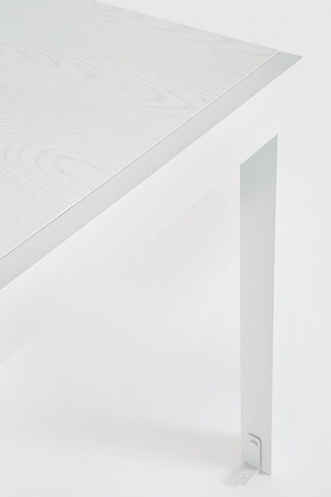 Raztegljiva miza CLIV v beli barvi združuje robustno aluminijasto ogrodje in ploščo z videzom lesa v modernem slogu – kakovost Bizzotto za terase in vrtove.