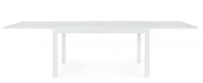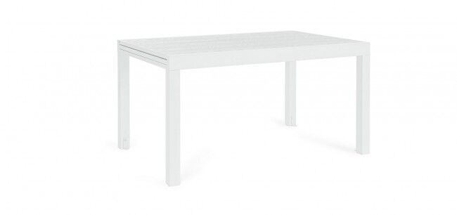 Raztegljiva miza CLIV v beli barvi združuje trpežno aluminijasto ogrodje in ploščo z videzom lesa v modernem slogu – kakovost Bizzotto za terase in vrtove.