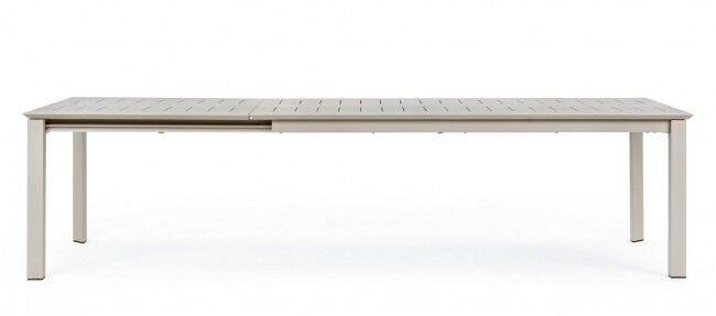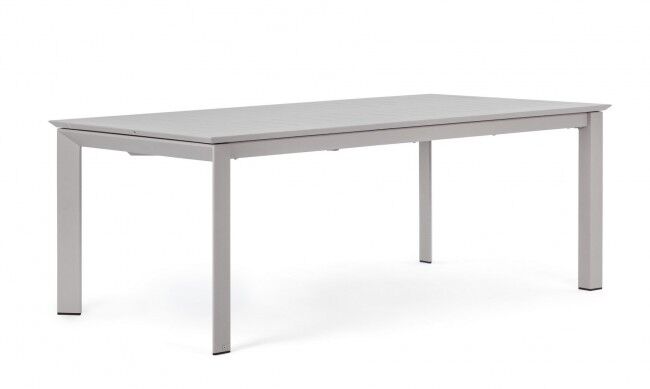 Raztegljiva miza KONNOR 200-300X110 RASTIN je elegantna in praktična miza, zasnovana za večje družbe in zunanjo uporabo. Miza je izdelana iz trpežnega aluminija, prašno barvanega s poliestersko barvo, kar zagotavlja odpornost na vremenske vplive in dolgo življenjsko dobo. Miza je raztegljiva s pomočjo teleskopskega mehanizma, kar omogoča enostavno prilagoditev dolžine od 200 cm do 300 cm, s čimer nudi prostor za 10 do 12 oseb. Za dodatno trpežnost in odpornost proti koroziji so uporabljeni nerjaveči jekleni vijaki. Dve izmed nog sta opremljeni s kolesi, kar olajša premikanje mize. Mizo je potrebno sestaviti, kar vključuje montažo nog.