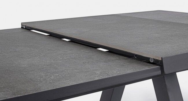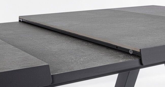 Raztegljiva miza KRION 205-265X103 antracit JX55 z aluminijasto strukturo in keramično ploščo debeline 10 mm. Miza v antracitni barvi je enostavno raztegljiva s pomočjo avtomatskega podaljška in primerna za 8-10 oseb. Noge je potrebno sestaviti.