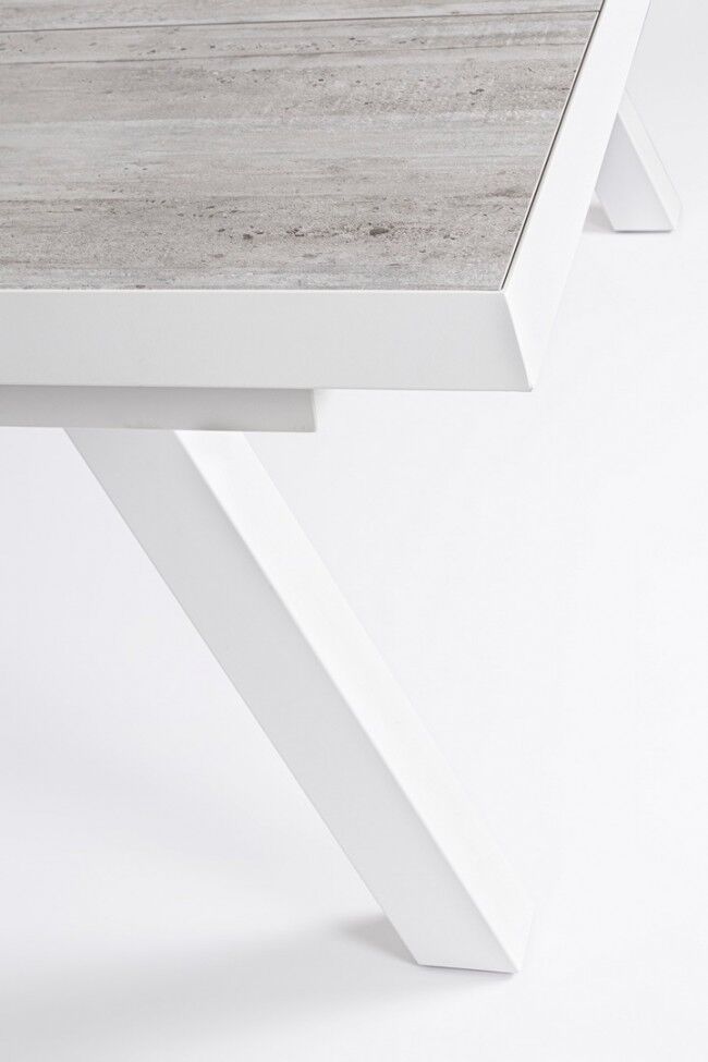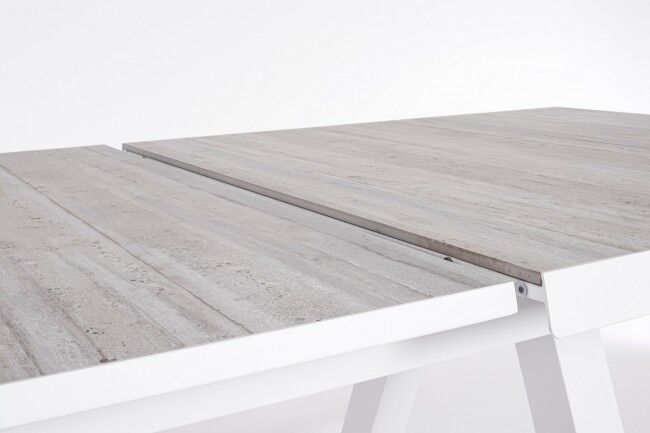 Raztegljiva miza KRION 205-265X103 bela z aluminijasto strukturo in keramično ploščo debeline 10 mm. Enostavno raztegljiva z avtomatskim podaljškom. Noge je potrebno sestaviti.