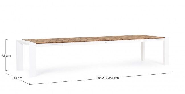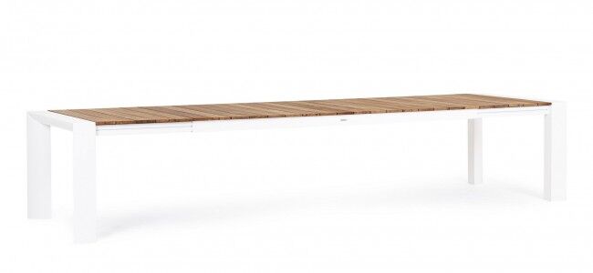 Raztegljiva vrtna miza CAMERON z belo aluminijasto strukturo in tikovino nudi eleganco in prilagodljivost za vsak zunanji prostor. Idealna za večje druženja, z možnostjo podaljšanja do 384 cm in kapaciteto za 10-14 oseb.