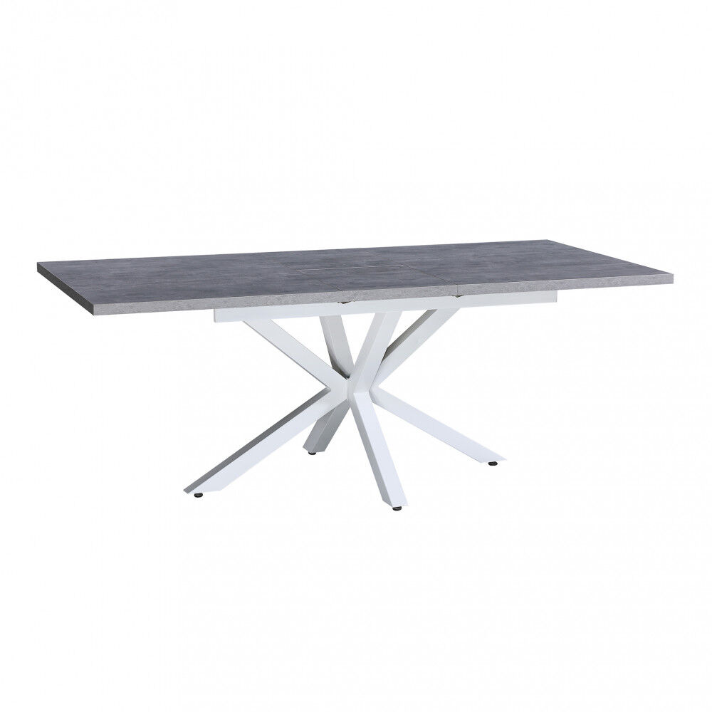 Raztegljiva vrtna miza GARFIELD s sivim lesenim videzom in belo kovinsko konstrukcijo. Popolna za sodoben vrt, teraso ali gostinski prostor – funkcionalna in odporna.