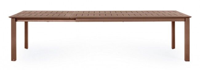 Raztegljiva vrtna miza KONNOR v privlačni barvi Barn je odlična izbira za zunanje prostore. Narejena je iz aluminija s prašnim premazom, ki zagotavlja odpornost na vremenske vplive, in ima teleskopski sistem za podaljšanje mize. Idealna za druženja na prostem, saj omogoča prostor za 8-12 oseb.
