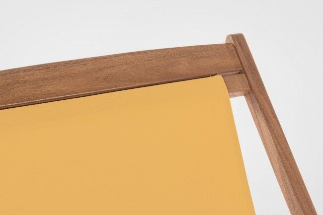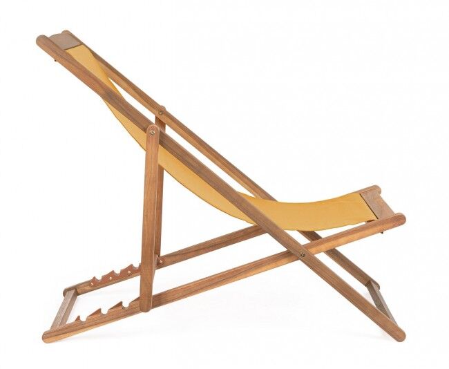 Leseni zložljivi ležalnik RELAX NOEMI SENAPE – eleganten ležalnik znamke Andrea Bizzotto iz lesa akacije in trpežne poliestrske tkanine. Štiri nastavitve naklona, zložljiv dizajn, dimenzije: dolžina 106 cm, širina 60 cm, višina 88 cm.