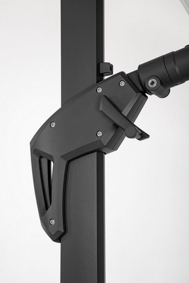 - Sistem nagibanja: Opremljen je s sistemom za nagibanje dežnika levo in desno, kar omogoča dodatno prilagodljivost.