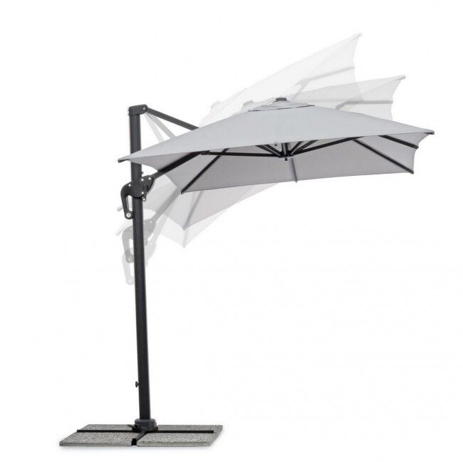 - **360° vrtenje**: Senčnik se lahko vrti okoli svoje osi za 360° s pomočjo pedala, kar omogoča enostavno prilagajanje sence glede na premikanje sonca.