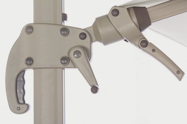 - **Naklon**: Dežnik omogoča navpični naklon z 5 različnimi nastavitvami ročaja, kar omogoča enostavno prilagajanje sence glede na položaj sonca.