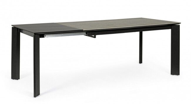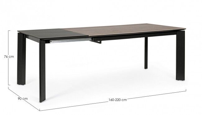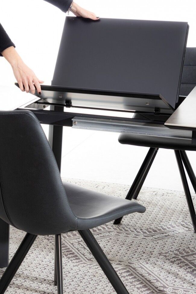 Raztegljiva miza BRIVA sivo-črna 160-220x90 je moderna miza z jekleno konstrukcijo, keramično površino, in raztegljivim MDF podaljškom. Primerna za 6 do 10 oseb, idealna za sodobne jedilnice. Na voljo z enostavno montažo.