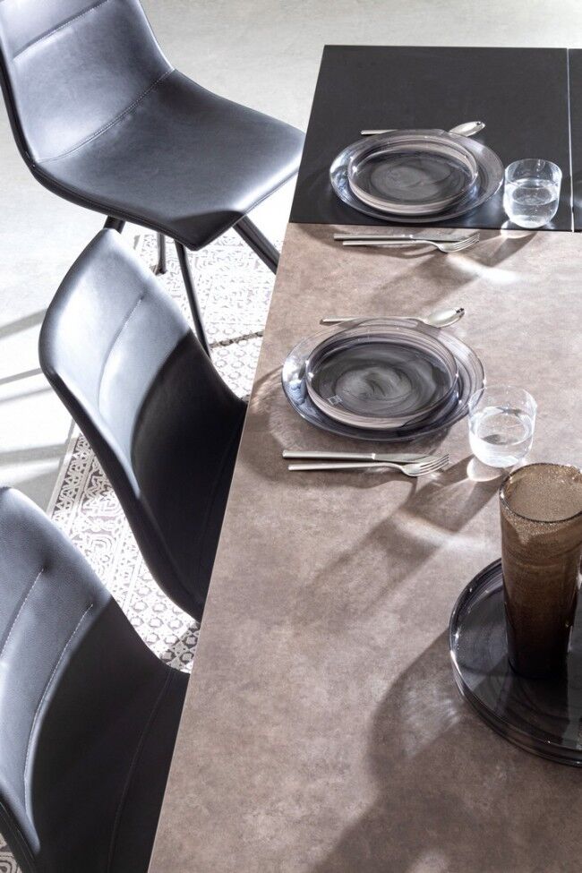 Raztegljiva miza BRIVA sivo-črna je moderna in funkcionalna miza, zasnovana za sodobne jedilnice ali zunanje prostore. Z robustno konstrukcijo iz jekla in površino iz keramike ponuja kombinacijo elegance in vzdržljivosti, zaradi raztegljive zasnove pa je primerna za različne priložnosti, saj lahko gosti od 6 do 10 oseb.