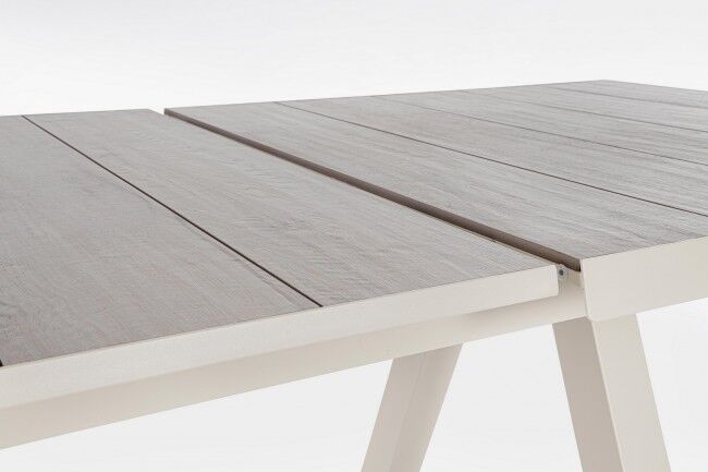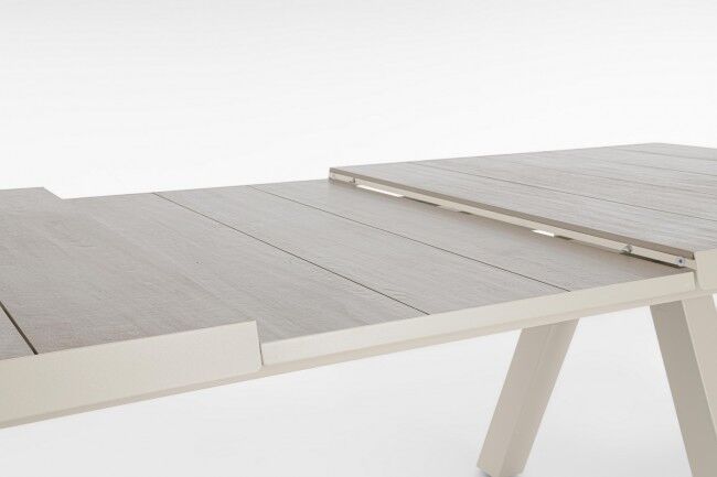 Raztegljiva vrtna miza KRION z aluminijasto strukturo in keramično ploščo nudi vzdržljivost in eleganco za zunanji prostor. Z raztegljivostjo od 205 cm do 265 cm je idealna za večje druženja in manjše skupine.