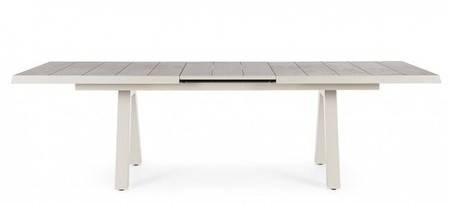 Raztegljiva vrtna miza KRION z aluminijasto strukturo in keramično ploščo je moderna in vzdržljiva rešitev za zunanje prostore. S teleskopsko raztegljivo funkcijo omogoča podaljšanje dolžine, kar je idealno za večje druženja ali manjše skupine.