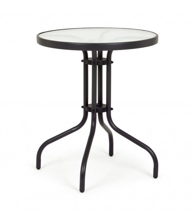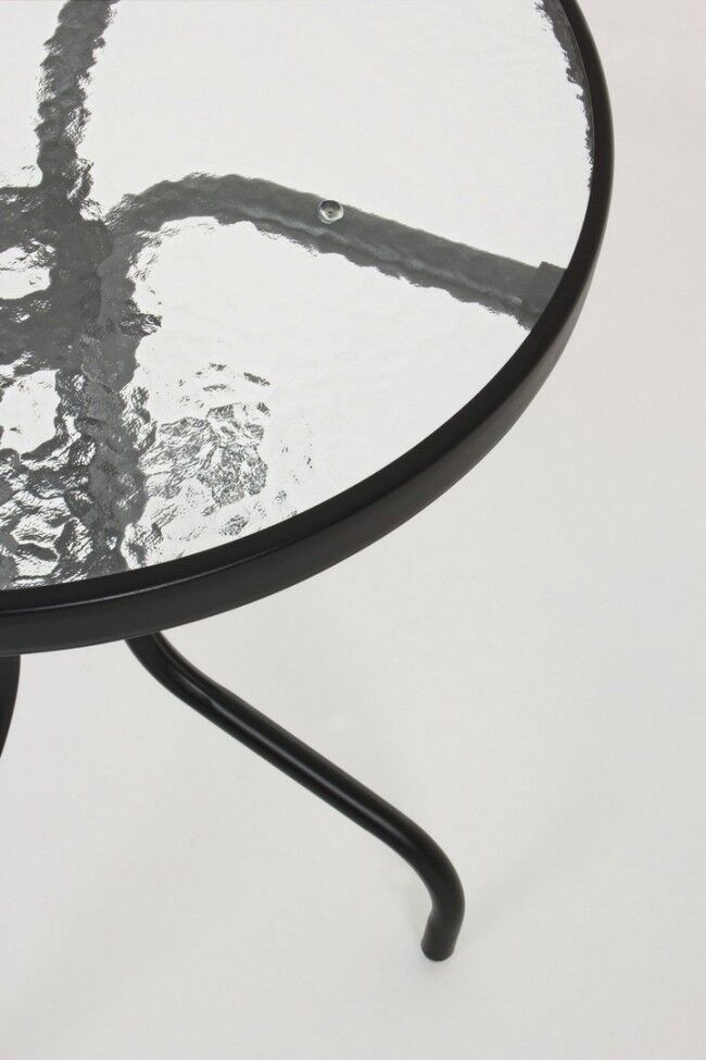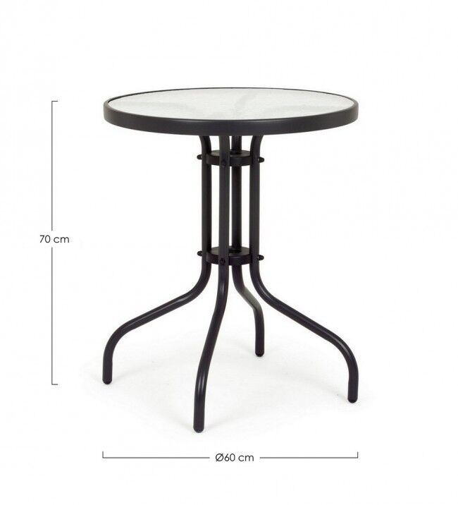 Vrtna miza RIPLEY D60 črna z elegantno jekleno konstrukcijo in kaljenim steklom je idealna za terase in vrtove. Odporna na vremenske vplive, premer 60 cm, višina 70 cm, teža 5,4 kg.