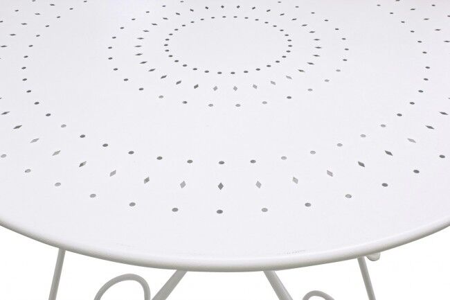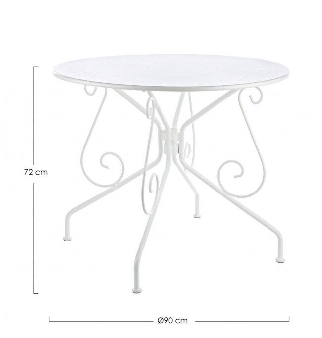 Vrtna miza ETIENNE Bela D90 je elegantna in klasična okrogla miza, izdelana iz prašno lakiranega jekla v čisti beli barvi (Bela). Idealna za zunanjo uporabo. Teža: 10 kg.
