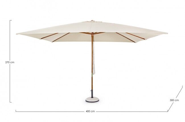 Vrtni senčnik SYROS 3x4 v naravni barvi je eleganten in funkcionalen dodatek za vaš zunanji prostor. Ima trdno strukturo iz lesa in osrednji drog premera 48 mm, sestavljen iz dveh kosov. Senčnik ima 8 letvic dimenzij 17x28 mm, ki so povezane z jeklenimi spoji, prevlečenimi z medenino. Dvojna škripec omogoča enostavno odpiranje in zapiranje senčnika. Platno je izdelano iz 180 g/m² poliestra v naravni barvi, z ventilacijsko odprtino proti vetru. Osnovni podstavek ni vključen.