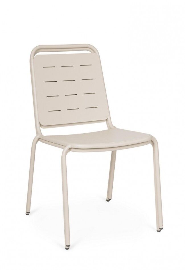 Vrtni stol YARA – šampanjec. Eleganten kovinski stol brez naslonov za roke, nakladalen in odporen na vremenske vplive. Min. naročilo 6 kosov.