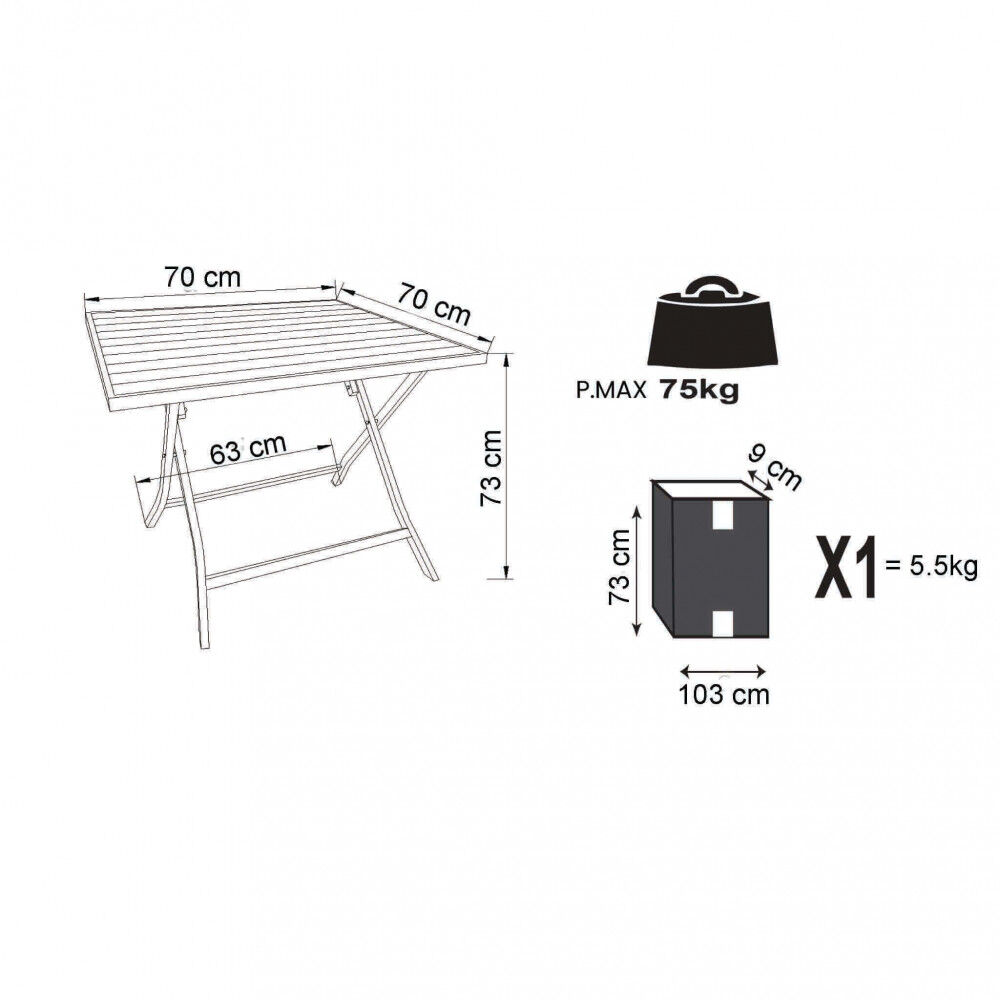 ZLOŽLJIVA MIZA ALABAMA 70 X 70
